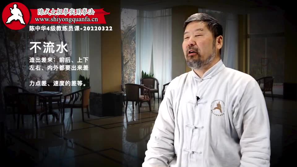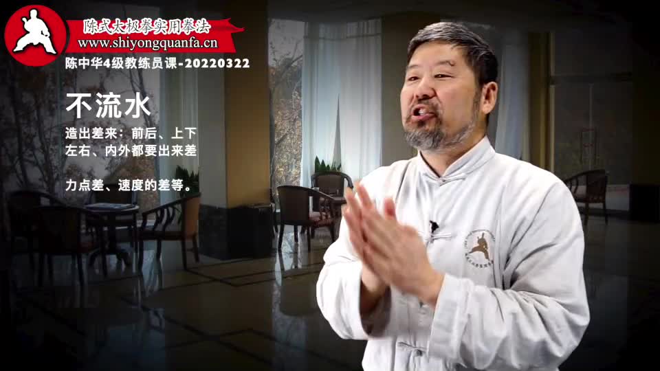 不流水-陈中华4级教练员课-20220322。造出差来:前后、上下左右、内外都要出来差力点差、速度的差等。