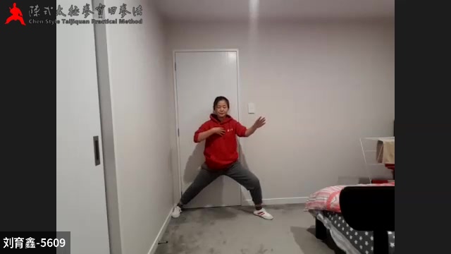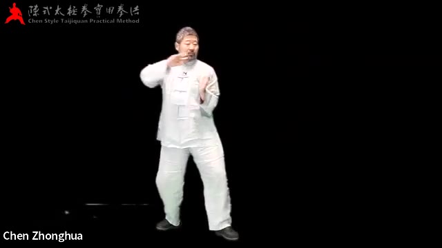 03:35 刘育新演示 后胯用大拇指按着往下按,肘为点,手放在那不动,收肘,肘往里转,右手大拇指压住胯,往后转,肘往外转,但不能换地方,一半伸到手上,一个半到肩上,肩又顶到胯上去,肘、肩、胯三点连在一起;合在一起,往后转是指的方向,不能有位移;