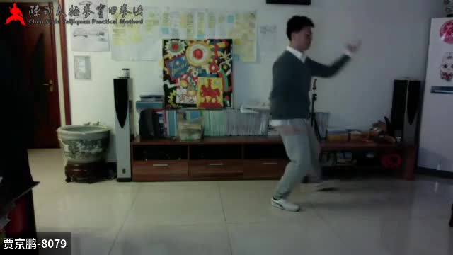 5、老师在指导京鹏同学动作时说,一定要找到支点,我们这个拳里边,最最重要的就是通过支点的建立,你的动作完全变了,要不然的话你都是用肌肉做动作,一有了支点就不用肌肉了。