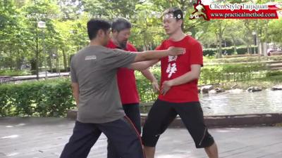 不动的时候才起来的。在这之前都在动。一用处没有。所以这个,刚才这个动作。所有的太极,所有的人生,所有的物理。所有的哲学。都在里。明白了吧。艾迪,明白了吧。就是你看现在。他开始,这个地方叫领劲儿。他领到哪他就断。断了以后再继续。它又接到下一个。这个就我刚才跟你说的。