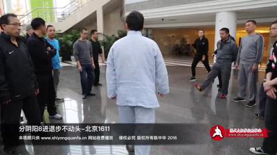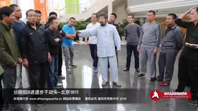 分阴阳,腰是在上步退步中间的东西,上步与退步两件事不牵扯到腰,和头是一样的,做动作的时候不牵扯到头,撤步的时候头不动,进步的时候头也不动,因为这两个动作产生了距离。