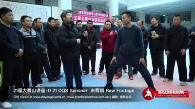 所有的力得放在一个大的地方。这个小的地方他是被动的。你看用身体。让他被动的。直接的这个东西。把力放在这。这就叫直接的。直接的超过了四两。就不对了。把劲儿是那去了。劲儿使在身上。很大的力。对准了它。那个力这么过去。过去的这个力。你就用四两,干什么。保证他的方向。不改。对准他就行了。否则话。我一使劲儿你看。