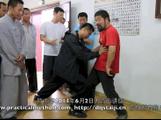对啊,你看,你过来,你试。你们做这个,不行了。你看,死了吧,你试一试,感到了吧?没感到。嗯?再试,这个就是错的。你能化解它。我给你封住,一动也不动。把腿这么一提的时候,你就下去了。