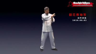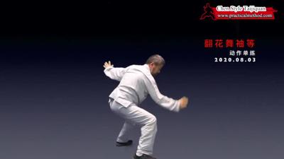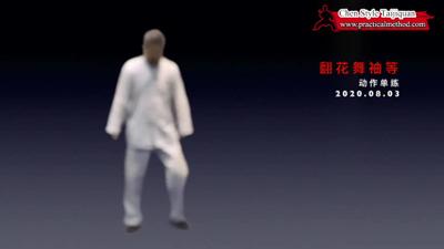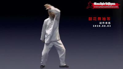 翻花舞袖,胳膊要抡起来、抡出离心力。但是不要用胳膊自己抡,是用胯蹬腰转、腰转带胳膊。练习中可以从胯腰动作开始。中轴不要晃。