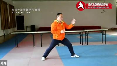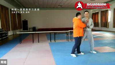 我说一下,练功下边第一关是开胯,上边第一关是手不动,手不动有练法、有用法,刚才简单讲了些劲路的用法,根据自己的条件练,年轻的身体好点的,我可以和他们试一试,年纪大的要量力而行,你看他二十来岁身体很好,啪啪啪练上很多遍,嘡嘡嘡跌上几次,没事,但年纪大的就注意了,扑嗵摔一下半天起不来,明天起来没法工作了。