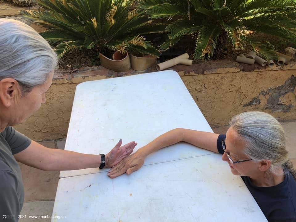 定住两头动中间?桌子能保证肩肘在一个平面,不翻掌,手沿这个缝运动。雷蒙娜为什么要挡着?