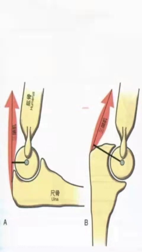 方法:沿尺骨鹰嘴上方,向肱骨干方向肌腱收缩约十公分。
