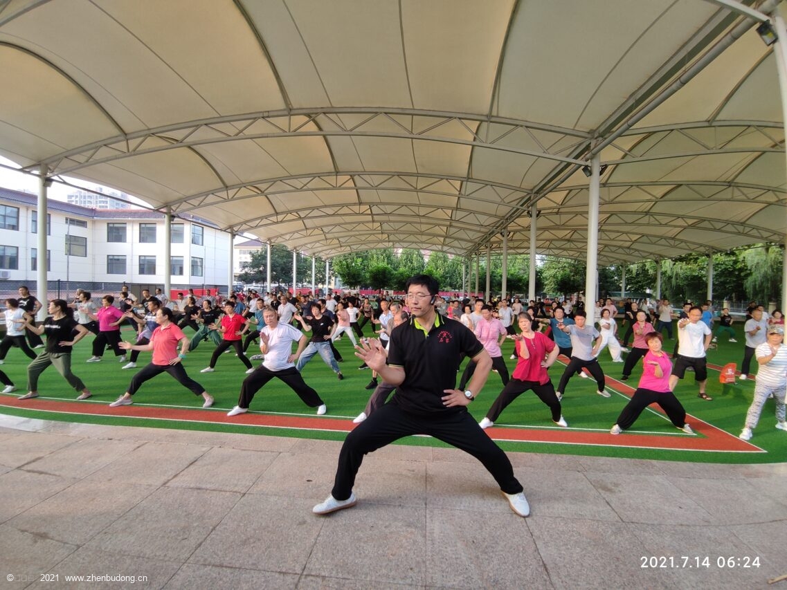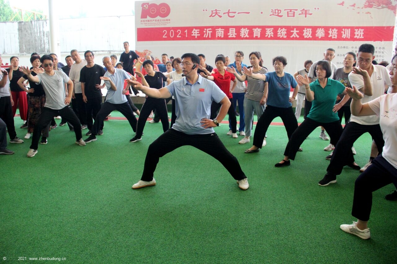 为推动我县太极拳的普及和发展, 丰富广大教育工作者暑期业余文化生活,增强教职工身体素质, 2021年7月10日,沂南县教育系统太极拳实用拳法培训班在县老干部活动中心隆重开班,来自全县各中小学的200多名教职工参加。这次培训班得到沂南县教育和体育局领导的高度重视和大力支持。
