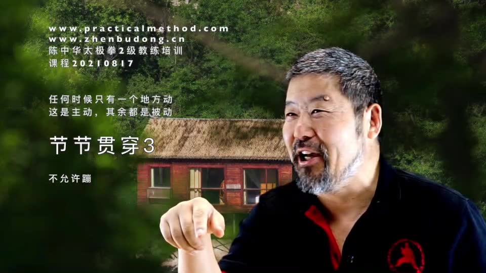 陈中华老师:对。对。就这一点。这一点用在我们太极里面。概念动啊。有不同的动。你要分不开这个动是什么意思的话。说话的时候就乱套了。这个动里面呢。有主动的动,和被动的动。你只要说动,你得想一想,你说的是主动的,还是被动的。这它就不会错了。因为你都把它放在一块儿说的话。因为动的方式太多了。