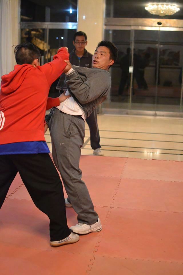 学拳之初,每天就是跟着陈旭教练学套路,当时就是教练怎么教,自己就怎么练,也不去想对错。通过一段时间的练习,套路基 本能打下来了,然后就经常听老师讲课,刚开始只知道自己如果按照要求的话一个动作也打不了,比如手肘式,教练都能收到自己的中心线了,自己也就能收到肋骨 往里一点,平时不会有太大的感受,等到2个人真正对联的时候差距就出来了。自己150斤的体重,自以为力量也不差,可在他们跟前,他们収肘可以很轻松的把 我拉过去,我却不管怎么用力,对方都是无动于衷,这就是差距,我认识到了収肘的作用,要做到这点,肩又必须拉开,就这样,慢慢的发现身体每一个部位都要拉 开,而拉开又需要有不动点,动与不动,能分开就是分了阴阳,要做到这些,我们就是通过反复的练习基本功还有一路拳来实现的。就这样收获越来越多,兴趣也就 越来越浓。很幸运的是陈老师您也在山上,每天可以听您讲课,然后再反复的给我们演示,大部分东西我自己根本做不到,不过差不多 能听懂,每天听完就自己练,虽然一做动作就感觉不对,其实真的不对(因为每次老师看我打拳都会讲出很多问题来的)。这才感觉拳真的挺难练,不过丝毫不会影 响我的信心,我坚信,别人能做到的事,我经过努力也一定可以做的到。时间一天天过去了,很多事物都在改变,但我对实用拳法执着的追求从来不会变。