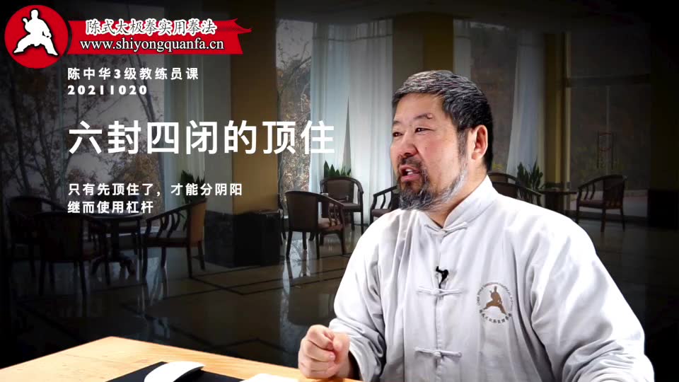 所以这三点呢。刚才刘松说了两点。就中间这个合住顶住这个事儿。太极的人都不愿意说这个东西。因为你一说顶住。大家就说这不是太极。太极的最最的关键是顶住。在顶住的基础上再加上分阴阳。就是你们记着杠杆的支点的,最最原则的。没有一个点顶住,没有杠杆啊。所以最基本的是顶住了。顶住这个之后才能有杠杆。既然,就算是顶住了没有杠杆,你也没败。如果没顶住,你什么也没有已经败了。