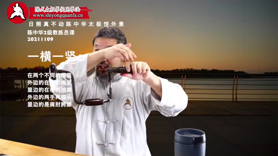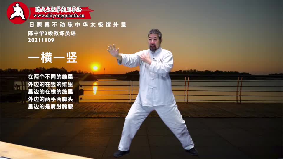 一横一竖是两个劲,在两个不同的维里。外面的在竖的维里,有两手两脚和一个头。里面的在横的维里,上面有肩肘胯,下面有脚膝胯,中间有胯膝肩。