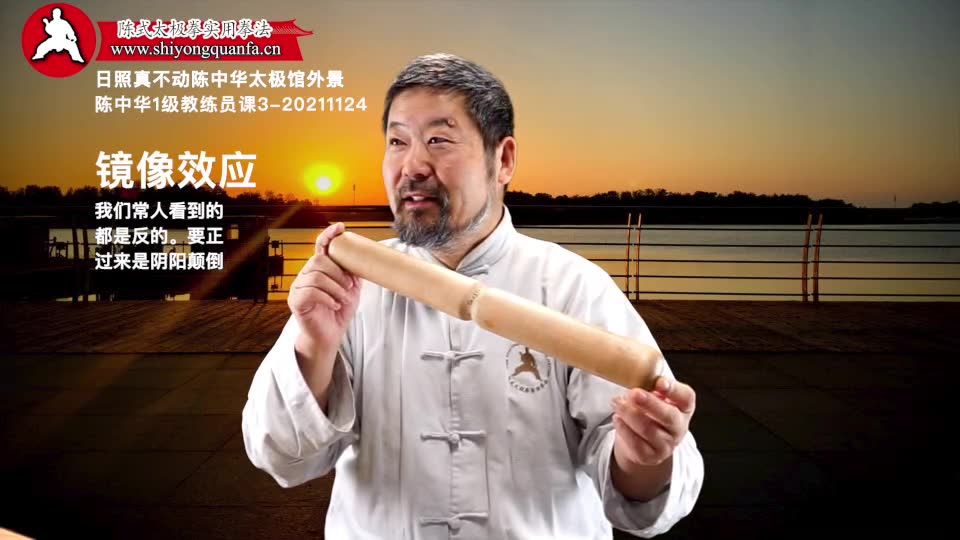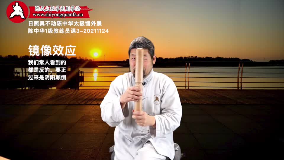 陈中华老师:一个等于我这么说。因为我看到你的那个屏幕是什么样。一个是在右边的三分之一,另外一个是在左边的三分之一。两个的位置是不一样的。但它的角度是一样的。所以我们的太极。很难被大家理解。很难学会的意思是什么。它的动作。和你眼睛看见的都是相反的。所以你怎么学也学不会它。我们,这个手,在这儿。