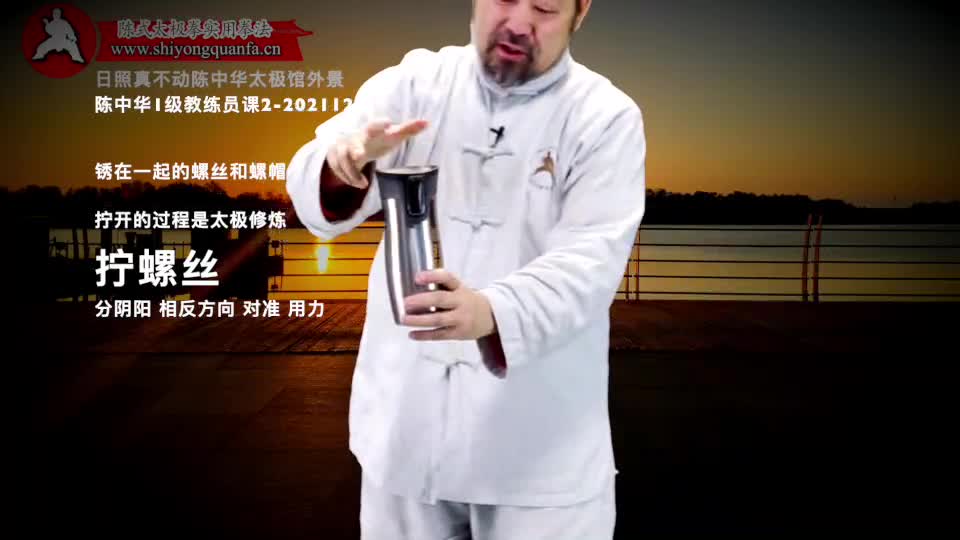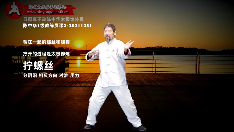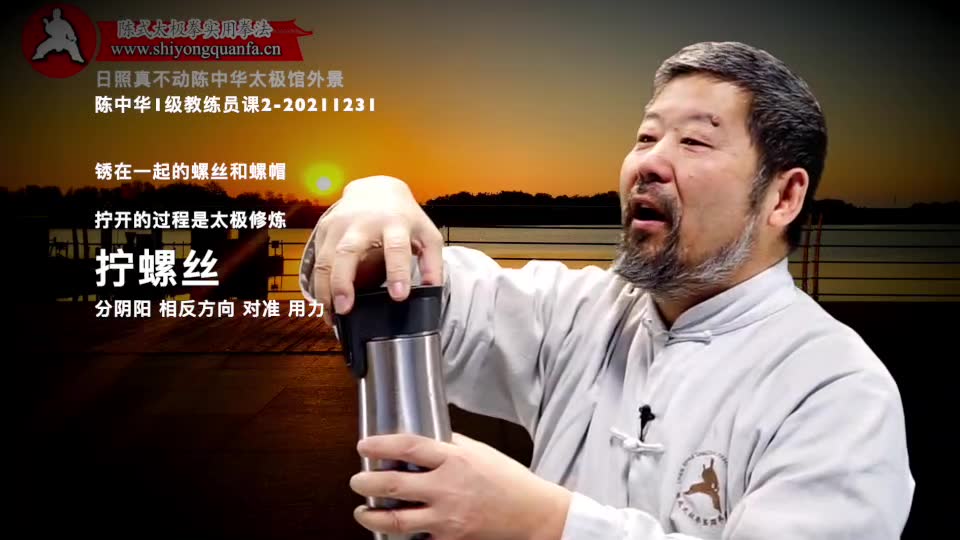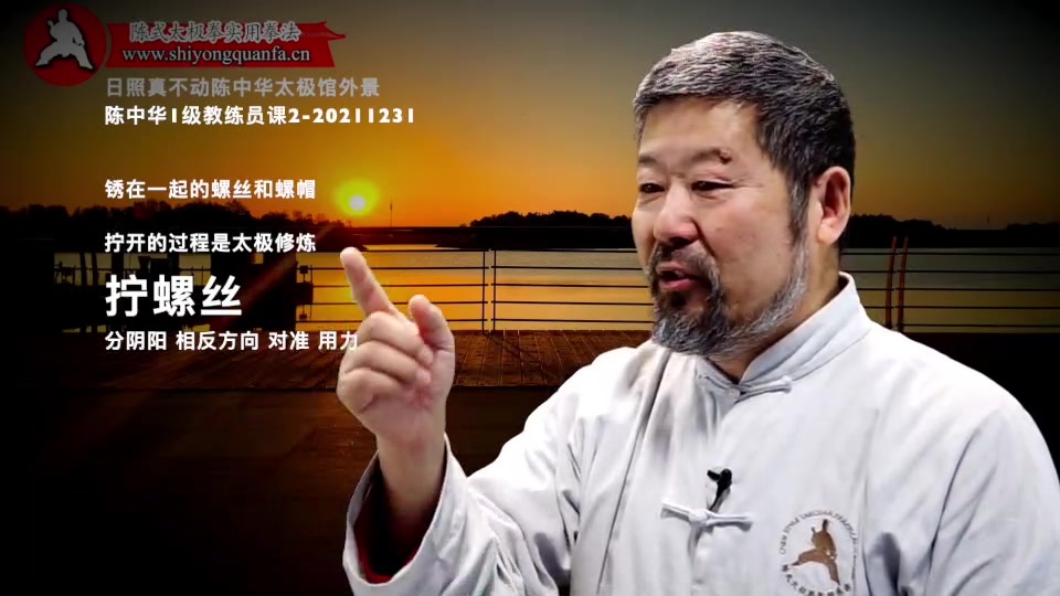 陈中华老师:第一件事儿啊。就是你做动作的时候。你有一段时间。你把它写下来。用一段时间专门这么想。过一段时间。偶尔的要用这个方法再检查你的套路。就是你做动作。把它假设成是什么呢。拧螺丝。这个拧螺丝我说的。是生了锈的螺丝。生了锈的螺丝你一定的有两个东西。一个东西把这个螺母得固定住。然后把那个螺帽,你得用另外一个机器。