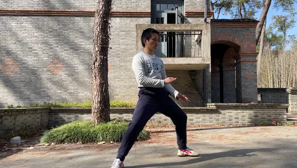1. 太慢。 2. 动作要从里面出来(中轴)。你做反了。3. 细节太多。先要力求整体感,不要做太多局部动作。 4. 按照你的年龄,式子应该再低一些。