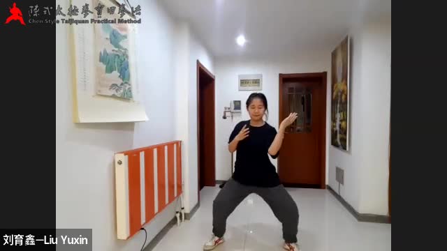 练习肘肩胯。头、前手、后肩定住,转肘肩胯,肩和胯的动作要大,摇把,身体下落。肘肩胯要碾着转,带力转,不要空转。外面定住,里面动作越大越好。胳膊和躯干分离,上身和下身通过胯分离。