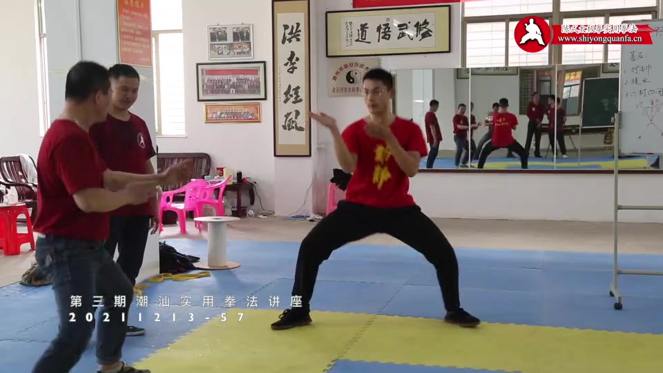 由大青山总教练陈旭主讲的第三期潮汕实用拳法讲座20211208-10。邱迎冬教练助理。