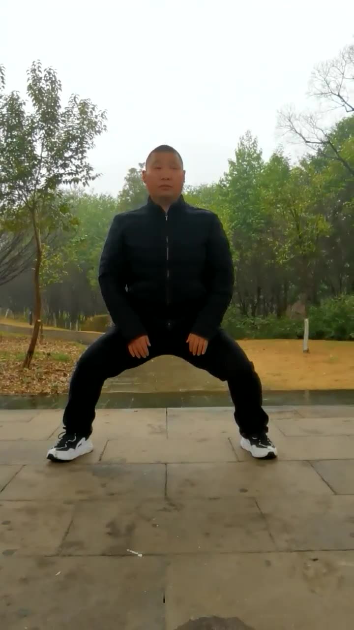 开胯只需要开一个缝,让上肢自然下落。你的肩膀和开胯一起动了。