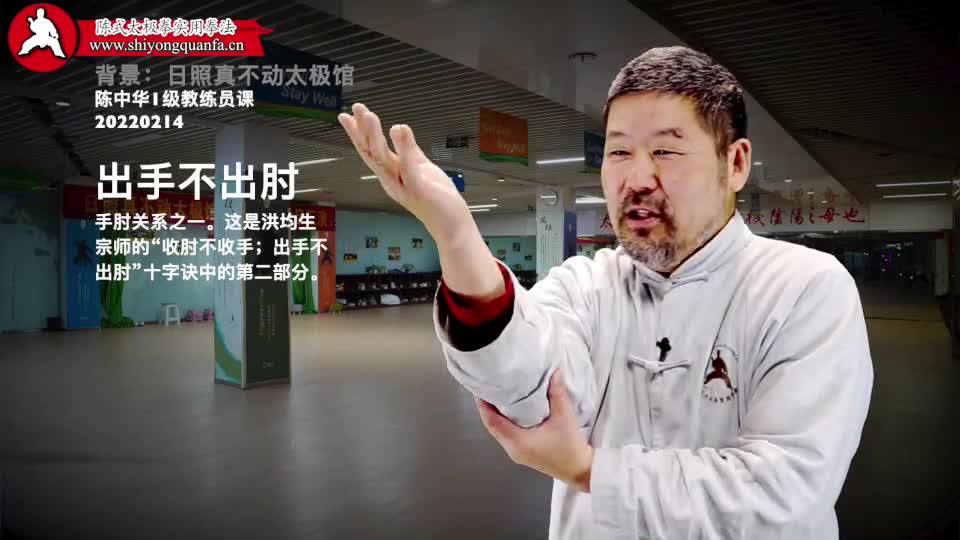 手肘关系之一。这是洪均生宗师的“收肘不收手;出手不出肘”十字诀中的第二部分。
