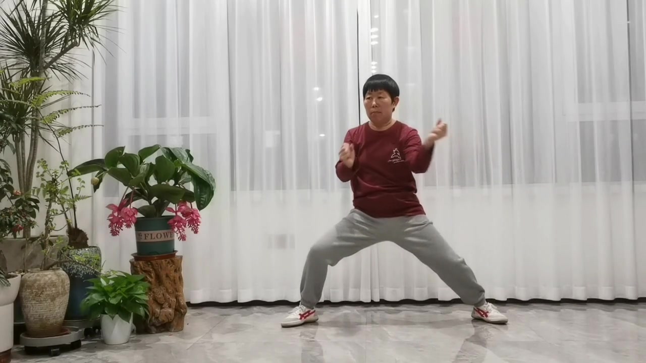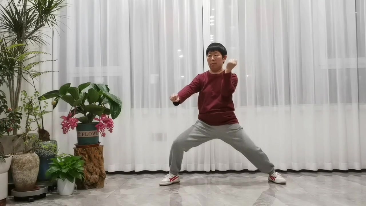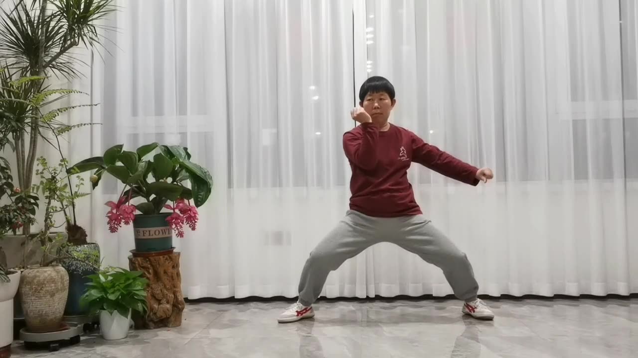 | 陈中华太极馆多伦多教练、青山教练何家伟评语: 动作步骤可以。中轴没有定住,做动作时,左右晃了一点。最后定式,右肘转过了,不在跟左脚的直线上。 | ||||||||||||||||||