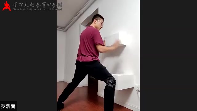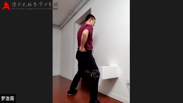 贴。膝盖定住,头和胯保持一条竖线上,胯往后蹲,头不能前倾,腿里面拉开,逼着筋在做动作,膝盖完全不动,小腿在拉伸,小腿前面的肌肉会酸。五指抓地,用脚踝前面的筋使劲,前面的筋变硬。推手里面的贴,头肩肘胯,贴着不顶不离,手往外伸着够自己的后背膝盖直着往前顶对上做动作。