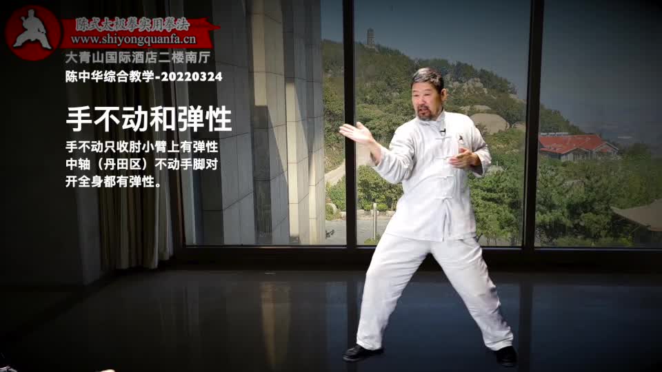 手不动和弹性-陈中华综合教学-20220324。手不动只收肘小臂上有弹性中轴(丹田区)不动手脚对开全身都有弹性。
