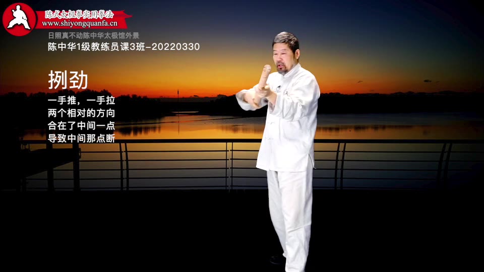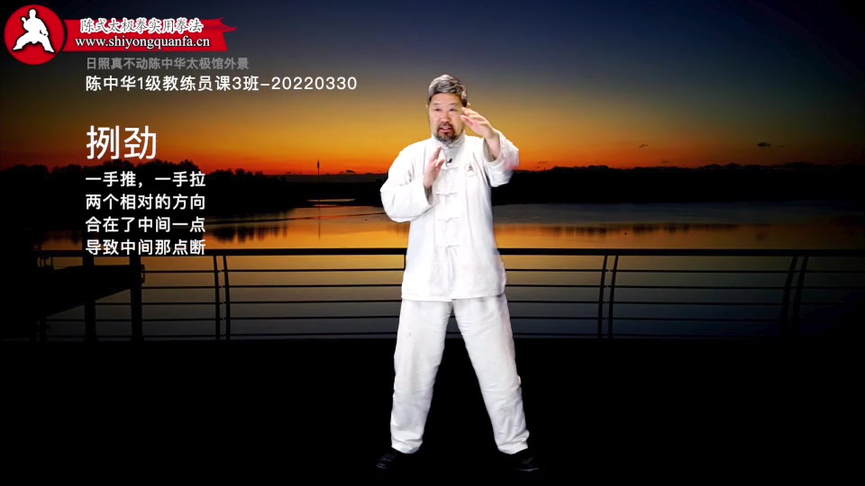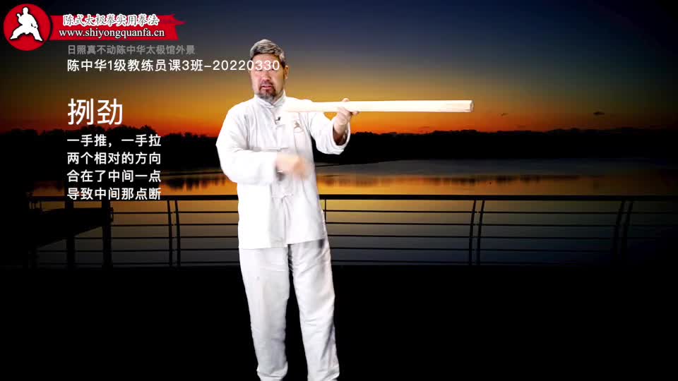 挒劲-陈中华1级教练员课3班-20220330。一手推,一手拉两个相对的方向合在了中间一点,导致中间那点断。