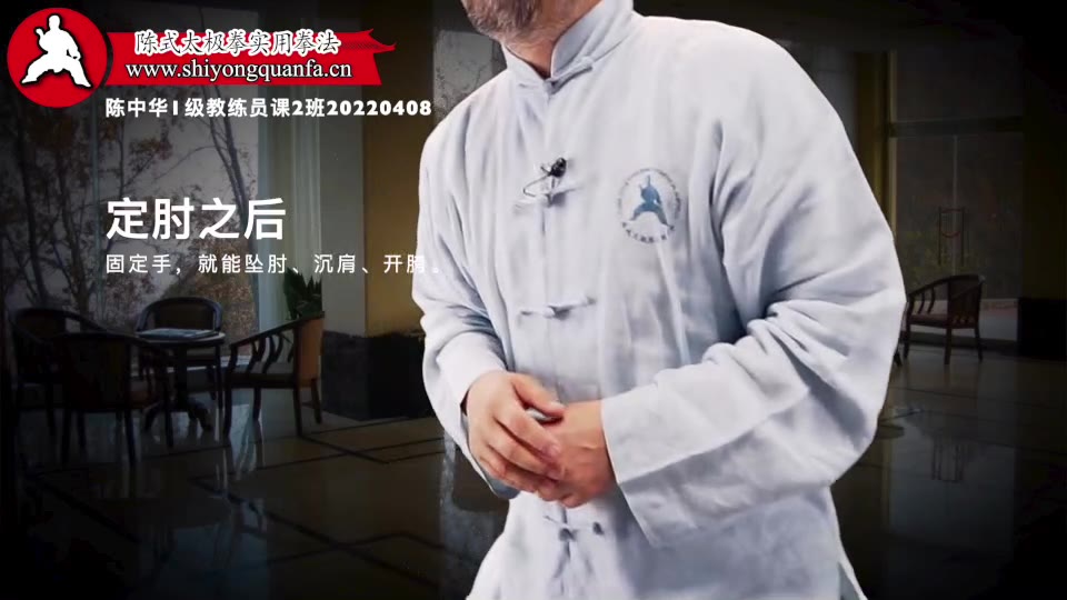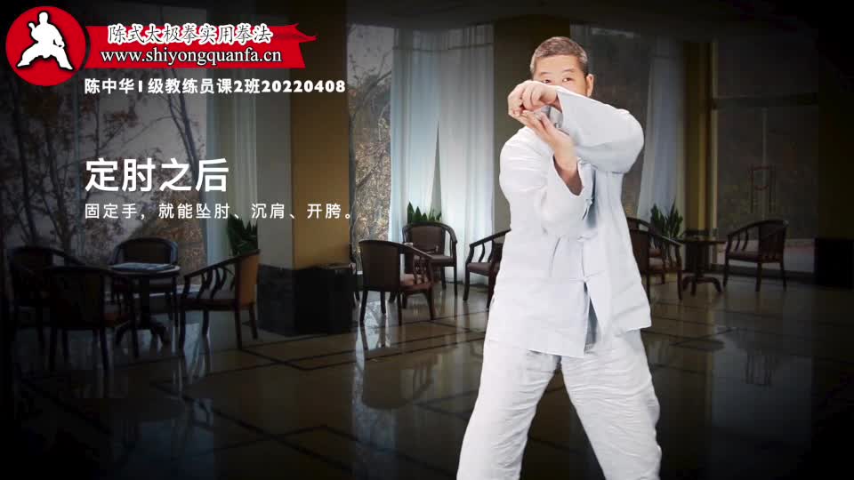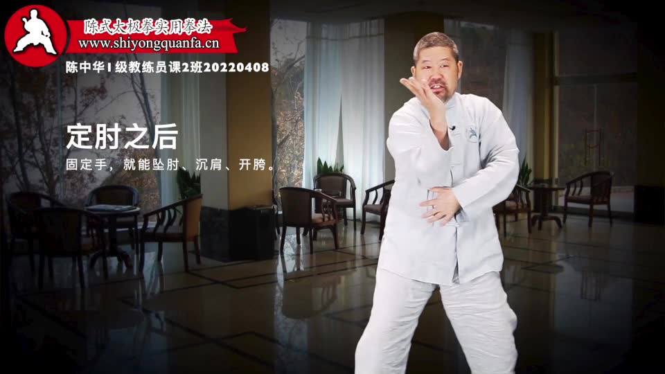 定肘之后-陈中华1级教练员课2班20220408。固定手,就能坠肘、沉肩、开胯。