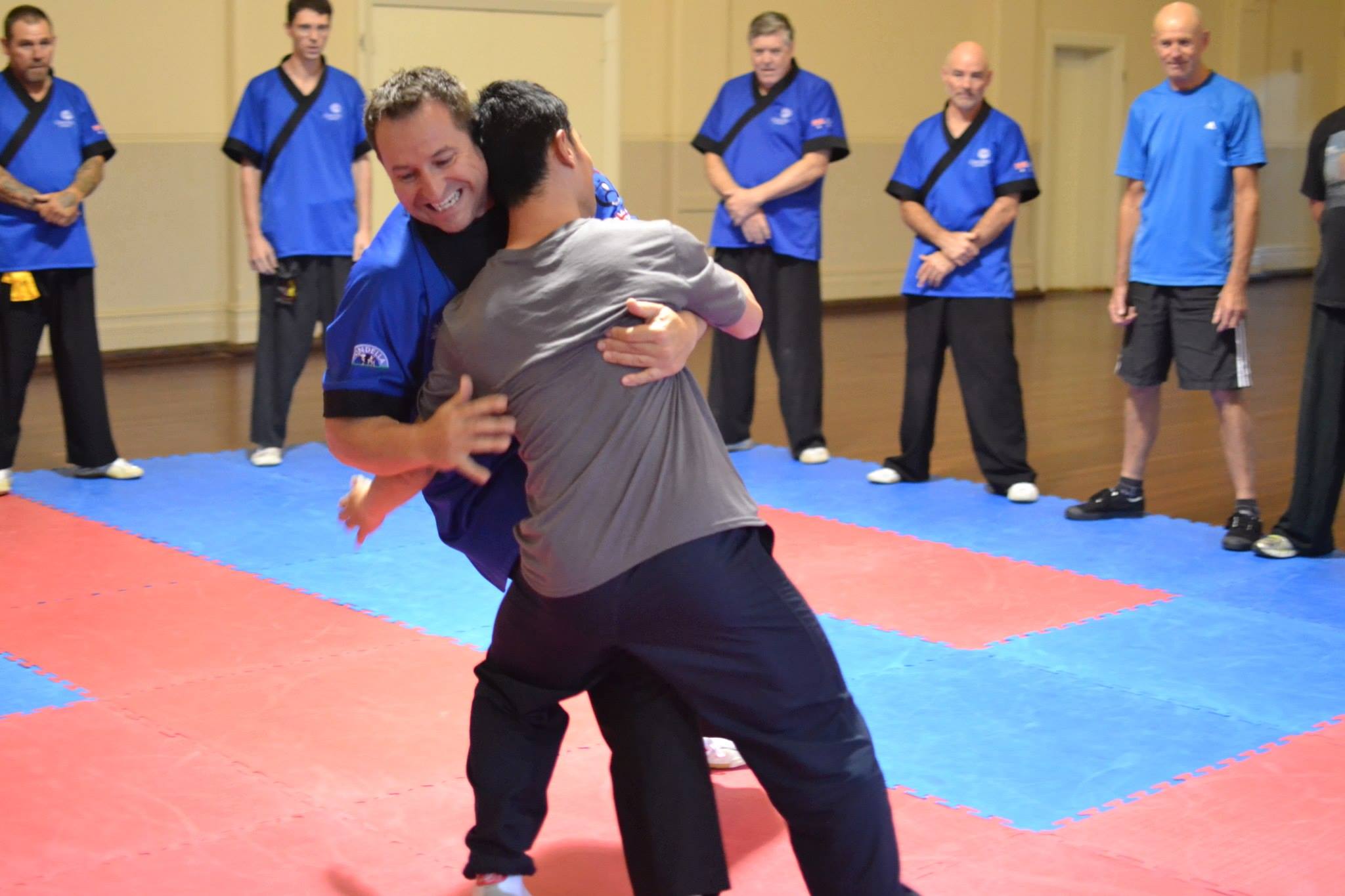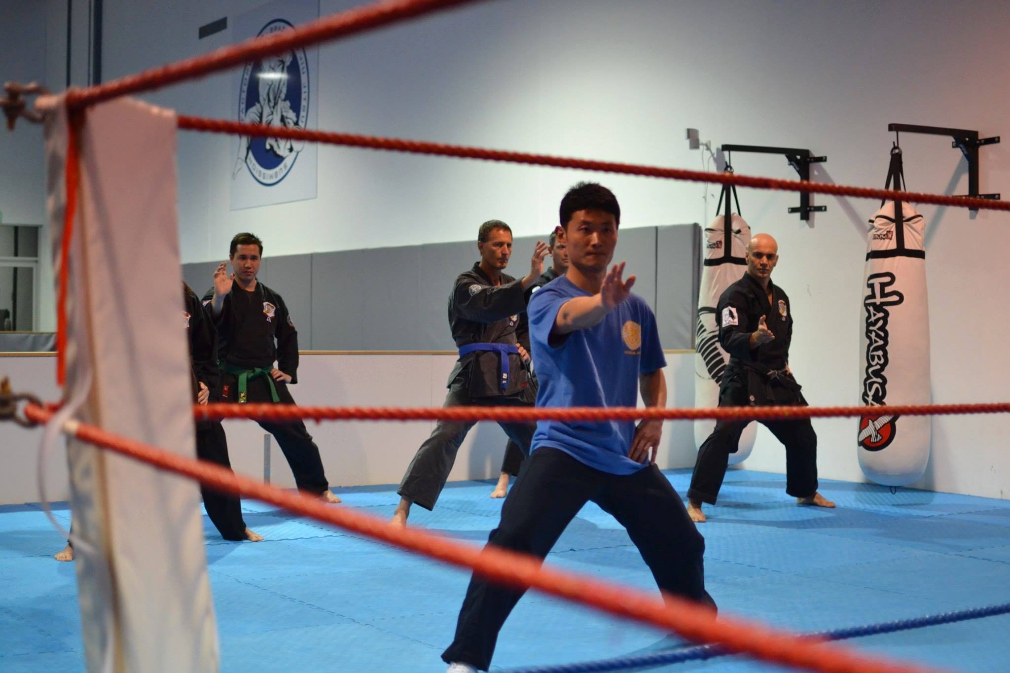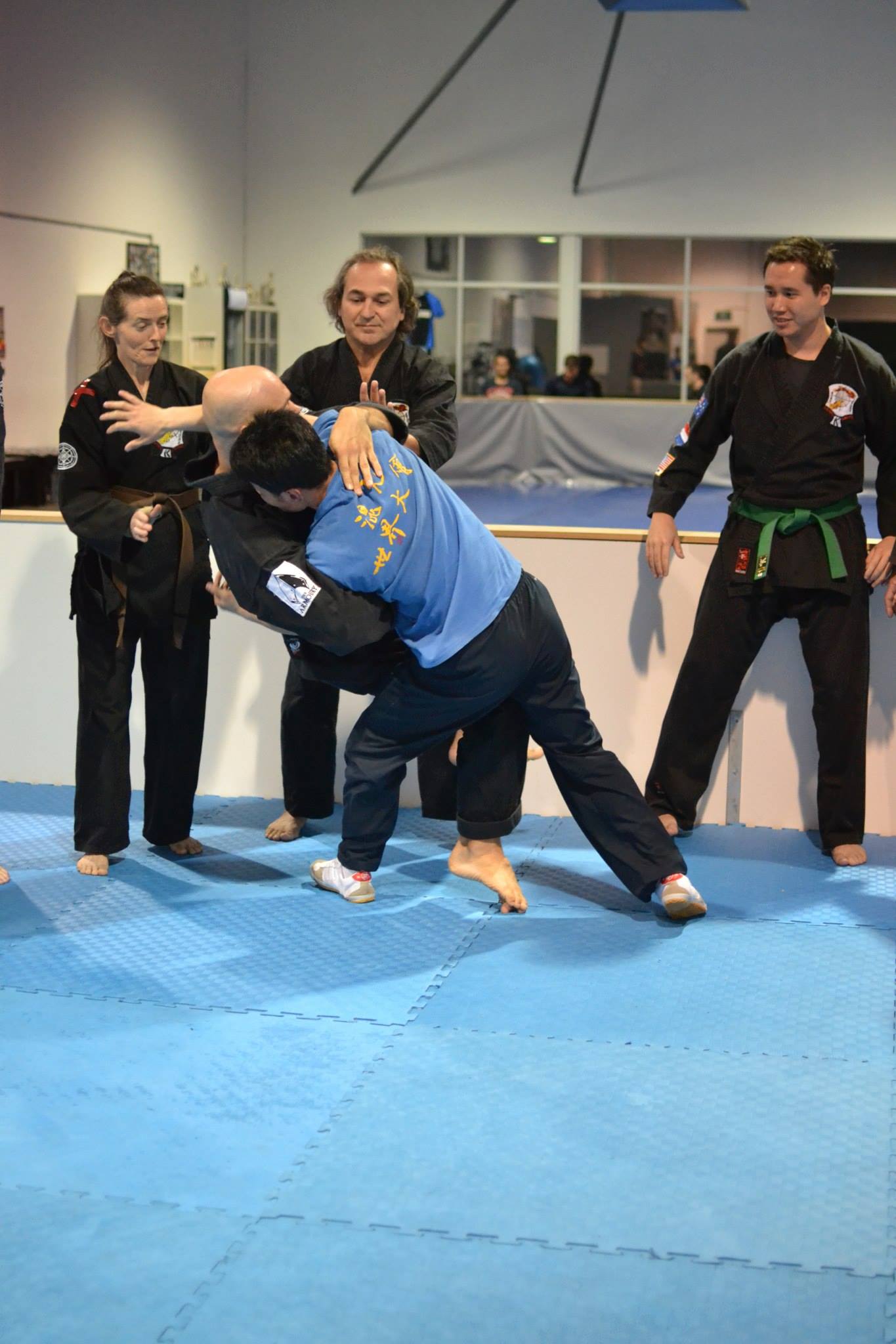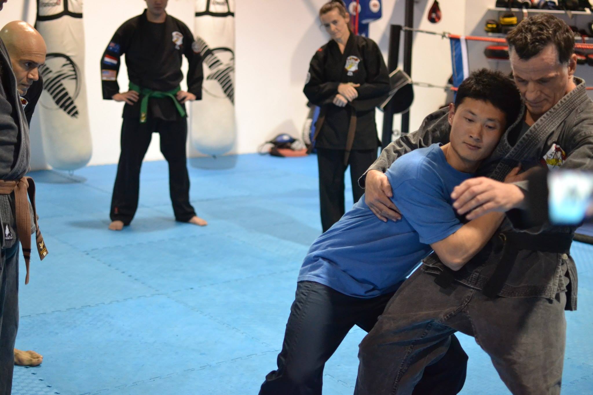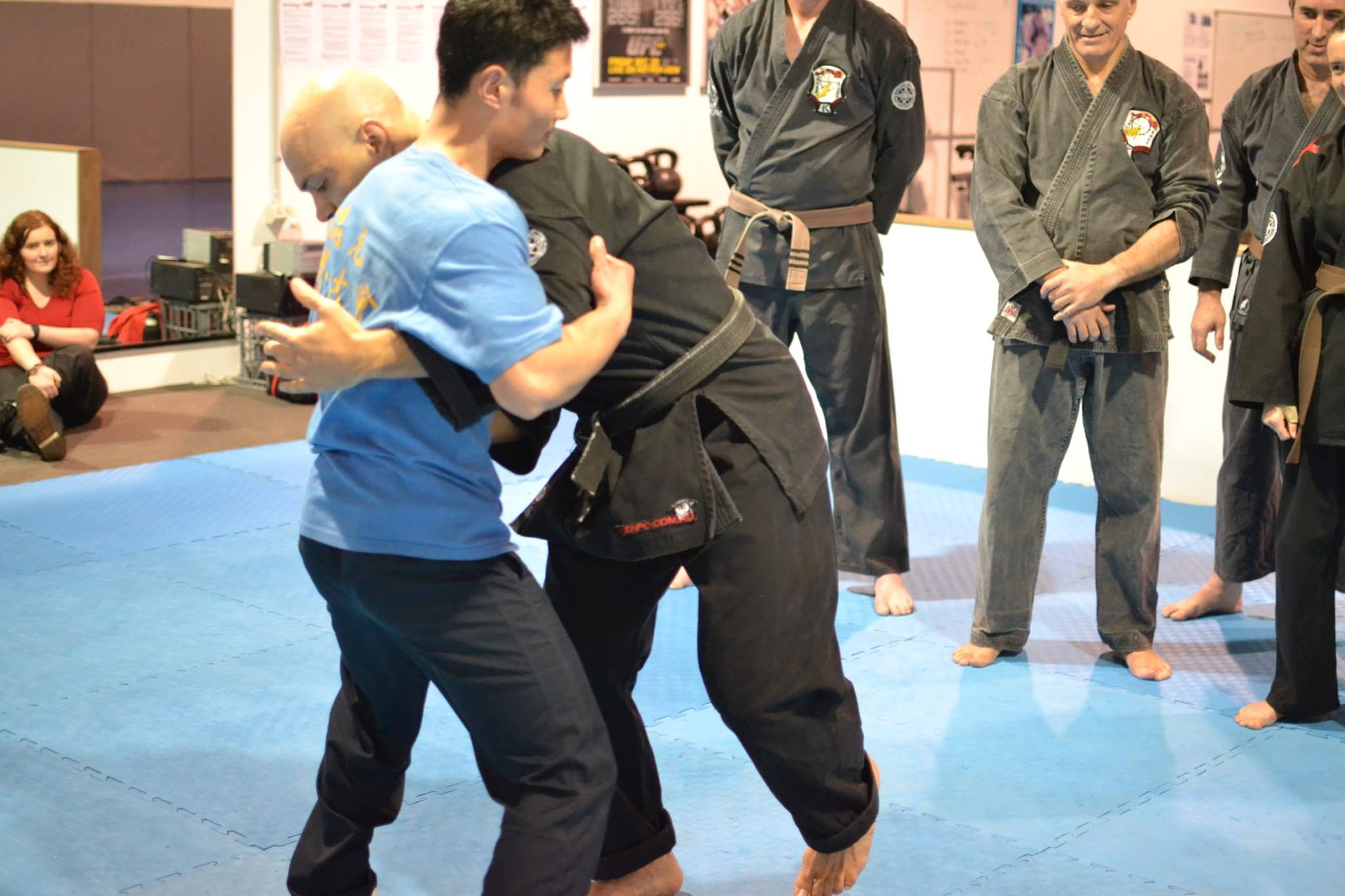 去空手道馆试手。将他们用实用拳法全部打倒。他们很守规矩。能打、能听、能学。