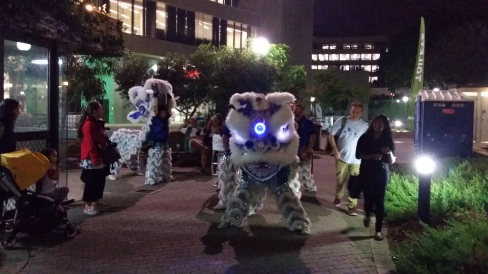 今天澳洲第二天,今天的安排没有太极课,中午同萧剑文及他的舞狮队到了一所高中,在这里我们为学校的学生表演了舞狮和太极,大家都很高兴。晚上同萧剑文舞狮队去了图书馆,美术馆中心做了舞狮表演。明天有太极课。