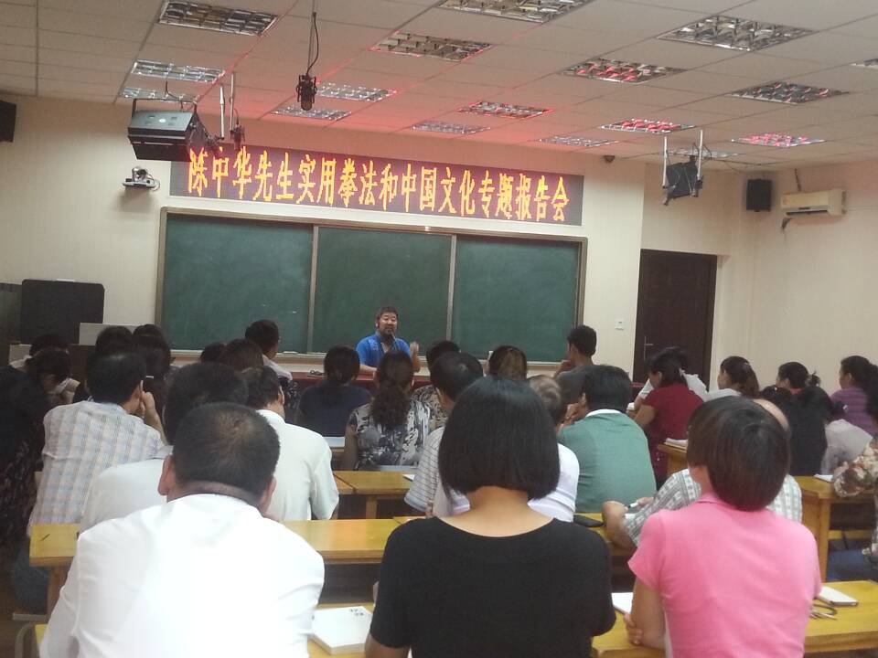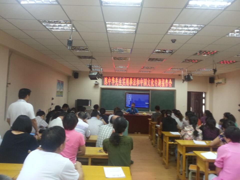 在两个小时的时间里,陈中华老师睿智、风趣幽默的讲述和解答赢得了教师们阵阵的掌声,更激发了教师们练好太极拳、弘扬中华传统文化的热情。