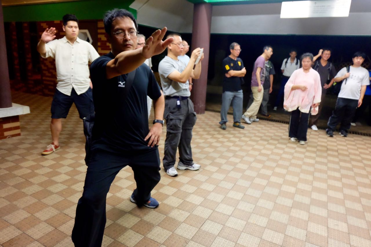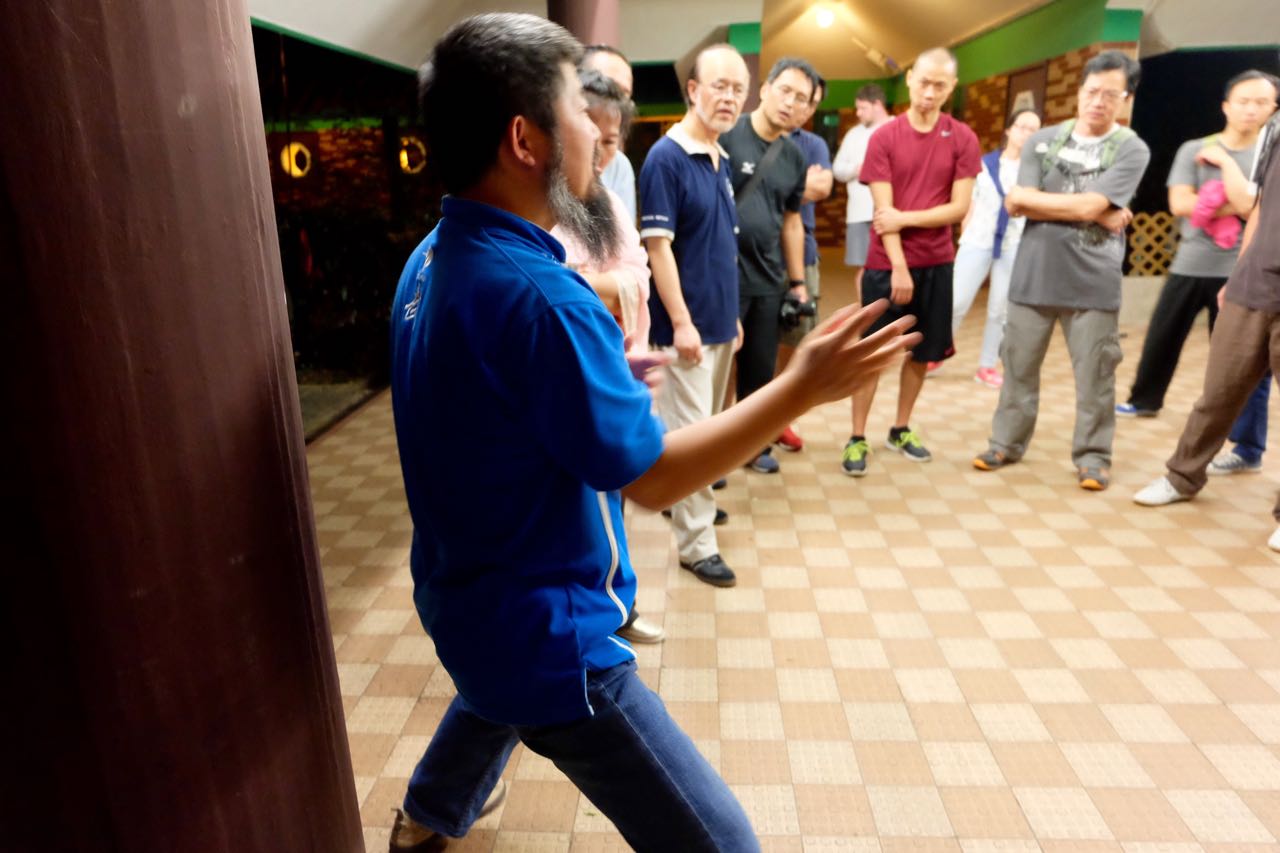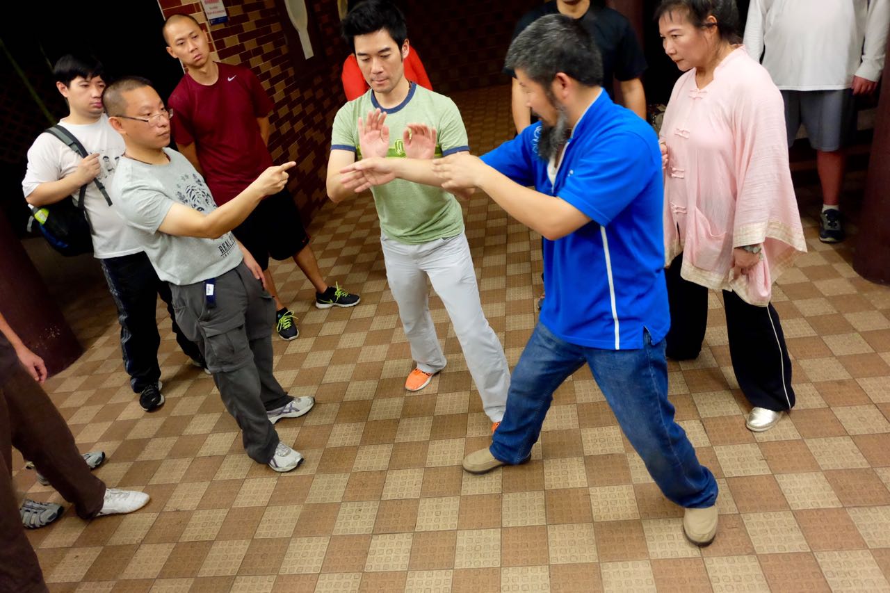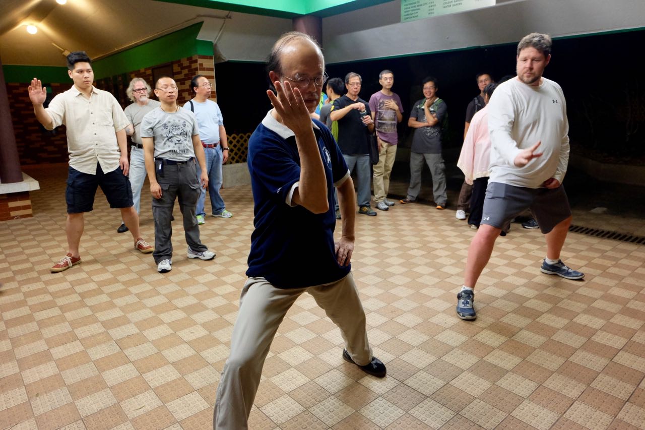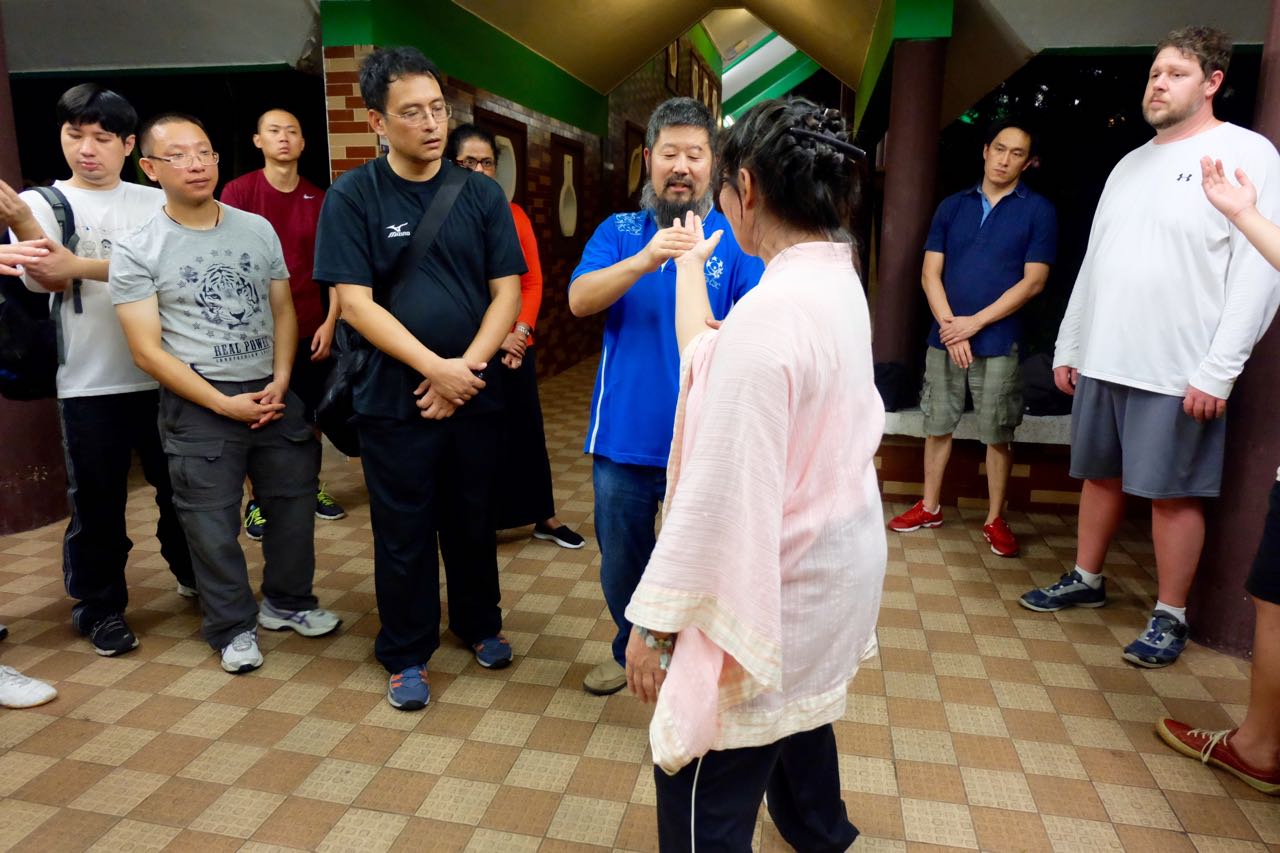 除了上面的理论外,陈老师还一如既往地依次和大家试手,让大家体会真正的太极劲及其练习方法。陈老师还指导大家做了提水、画圈、收肘、占位等练习。
