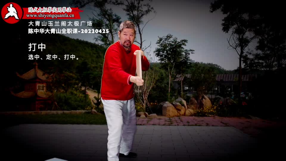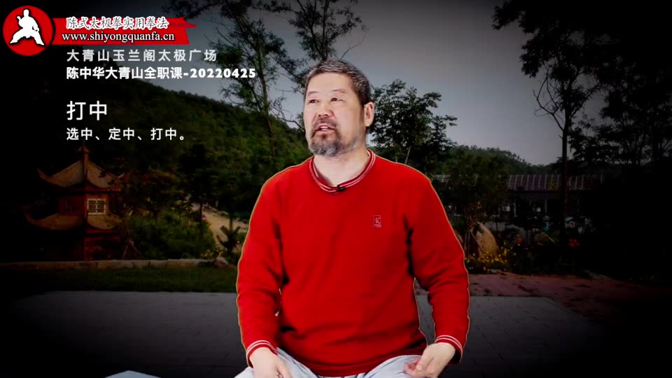 陈中华老师:这个地方合着。一做动作的时候你脚过来了。脚在这了。这个时候呢。你有了前后的动作。你做的时候这个前后的动作它是在这有了前后的动作。什么也没有。就是脚往里扣的时候这个手往这伸。这个胯往后走。就做这个就行了。你看。就这么一点就行。一定不要有。一点这个动作。完全在一个。一条线上。直着出去就行了。