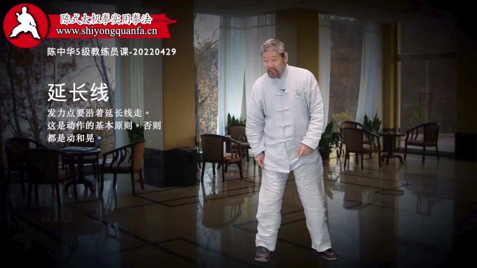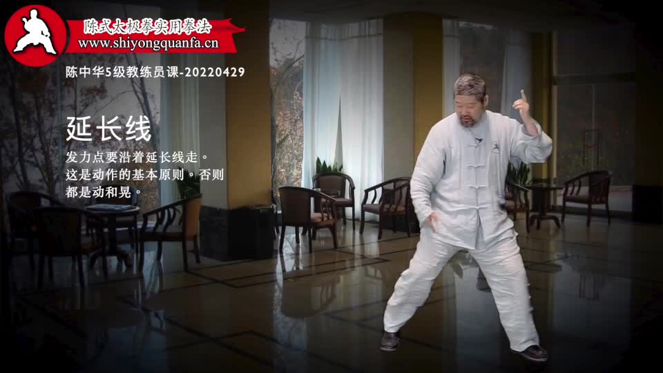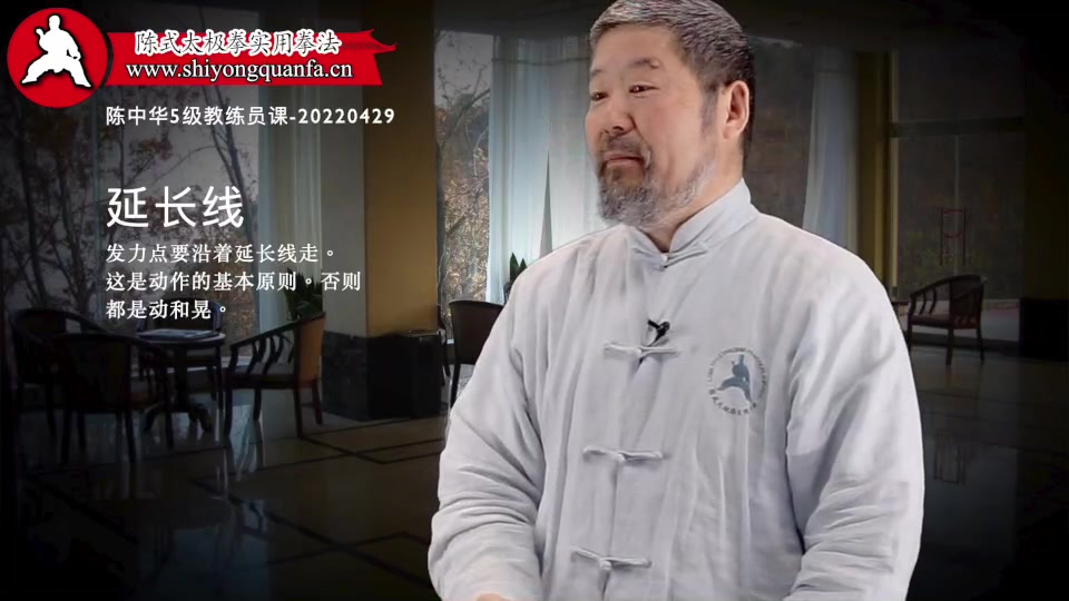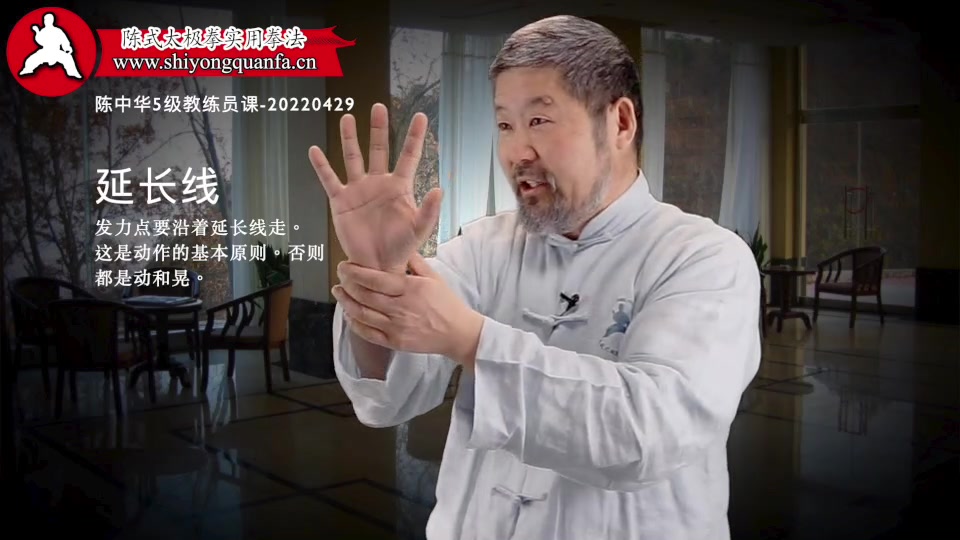 延长线-陈中华5级教练员课-20220429。发力点要沿着延长线走。这是动作的基本原则。否则都是动和晃。