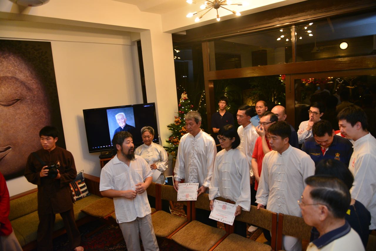 陈中华老师在2015.12.11日在新加坡接收6为新入室弟子。嘉宾有郑子太极名家张显宗、世界六合八法联盟主席周树生、新加坡陈式太极拳协会总教练许晋阁、冯志强宗师入室弟子陈美媚、新加坡著名陈式名家冯凯鈱、Joyce Chua 等四十多人参加。
