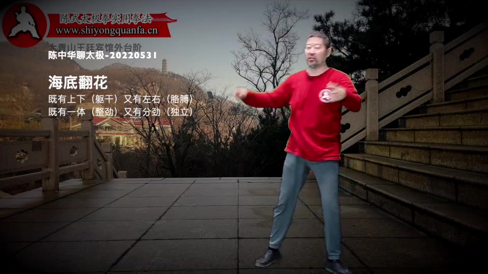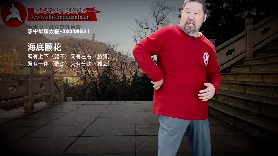 海底翻花-陈中华聊太极-20220531。既有上下(躯干)又有左右(胳膊)既有一体(整劲)又有分劲(独立) 。