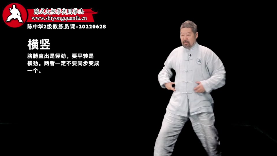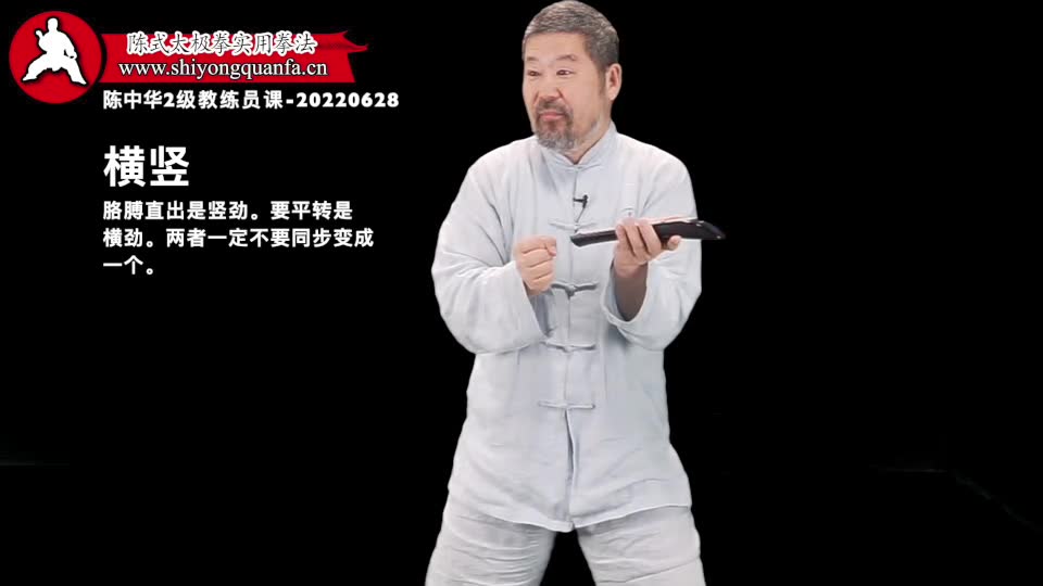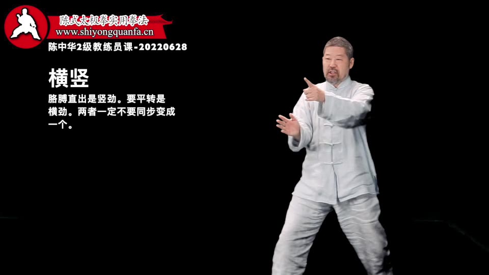 横竖-陈中华2级教练员课-20220628。胳膊直出是竖劲。要平转是横劲。两者一定不要同步变成一个。