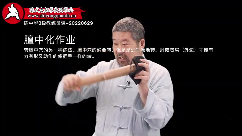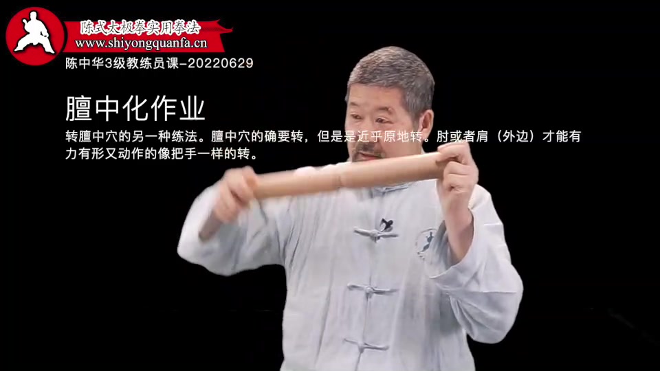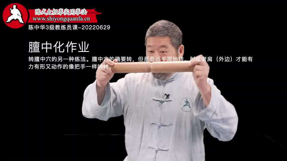 膻中化-陈中华3级教练员课-20220629。转膻中穴的另一种练法。膻中穴的确要转,但是是近乎原地转。肘或者肩(外边)才能有力有形又动作的像把手一样的转。