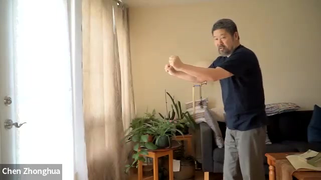 陈中华老师:这么碰着它。你不要老想这么走。你就这么走就行了。抓着它之后。你身体不是在这么。你以这个肘领着。然后。
