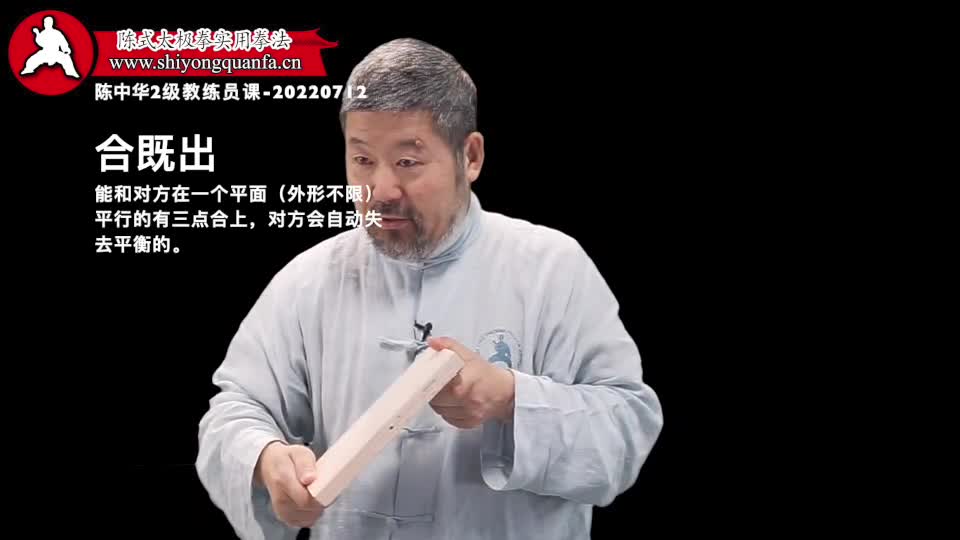 合既出-陈中华2级教练员课-20220712。能和对方在一个平面(外形不限)平行的有三点合上,对方会自动失去平衡的。