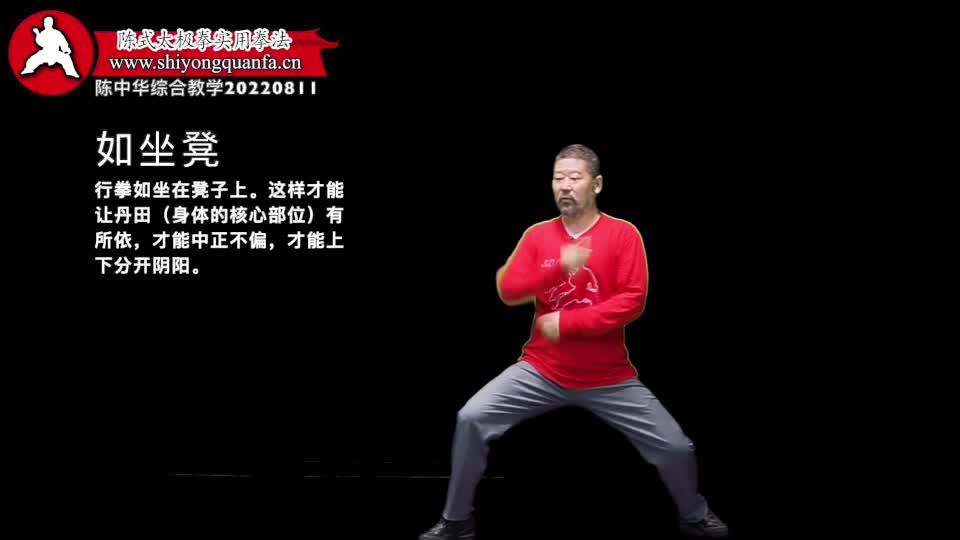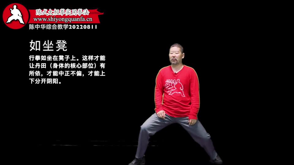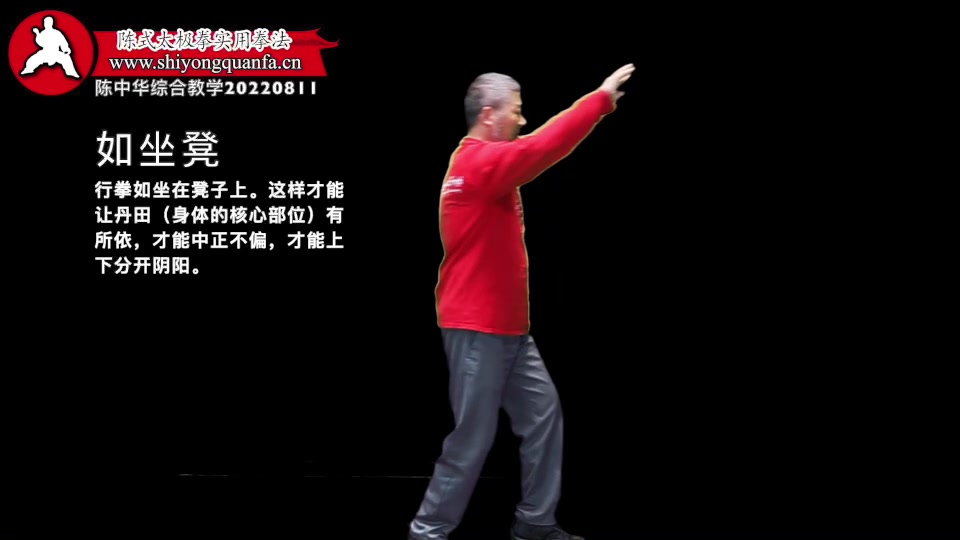 如坐凳-陈中华综合教学20220811。行拳如坐在凳子上。这样才能让丹田(身体的核心部位)有所依,才能中正不偏,才能上下分开阴阳。