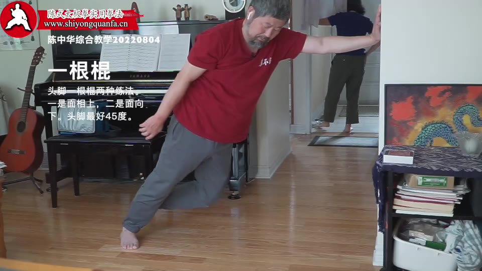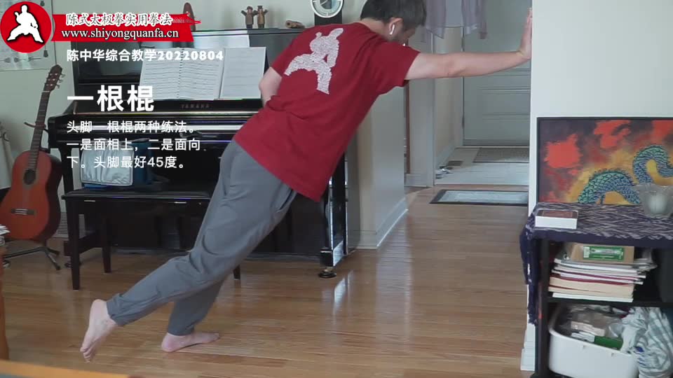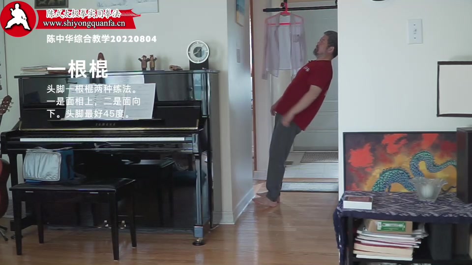 一根棍-陈中华综合教学20220804。头脚一根棍两种练法。一是面相上,二是面向下。头脚最好45度。