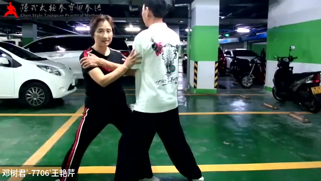 视频学习:两手虎口张开,大拇指与四指在对方胳膊的两侧。收肘、合住,上身不动转胯,用胯打。上步时先出脚, 上身不动,走胯。