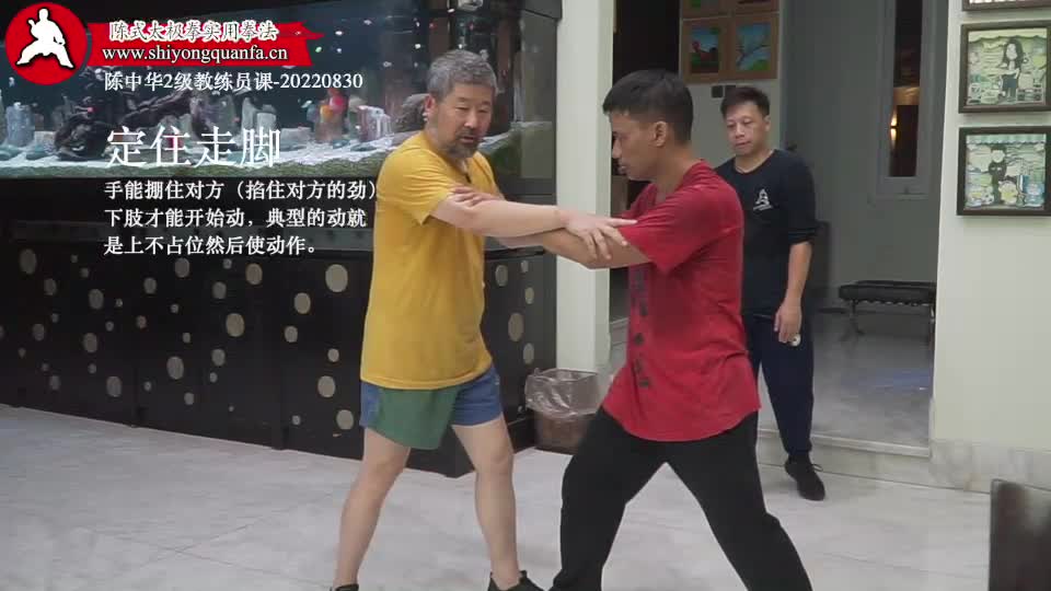 定住走脚-陈中华2级教练员课-20220830。手能掤住对方(掐住对方的劲)下肢才能开始动,典型的动就是上不占位然后使动作。