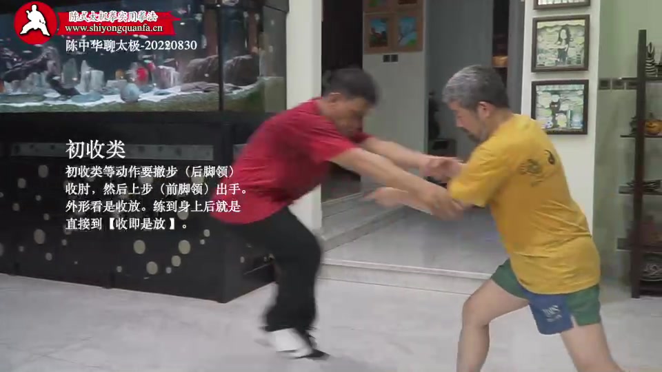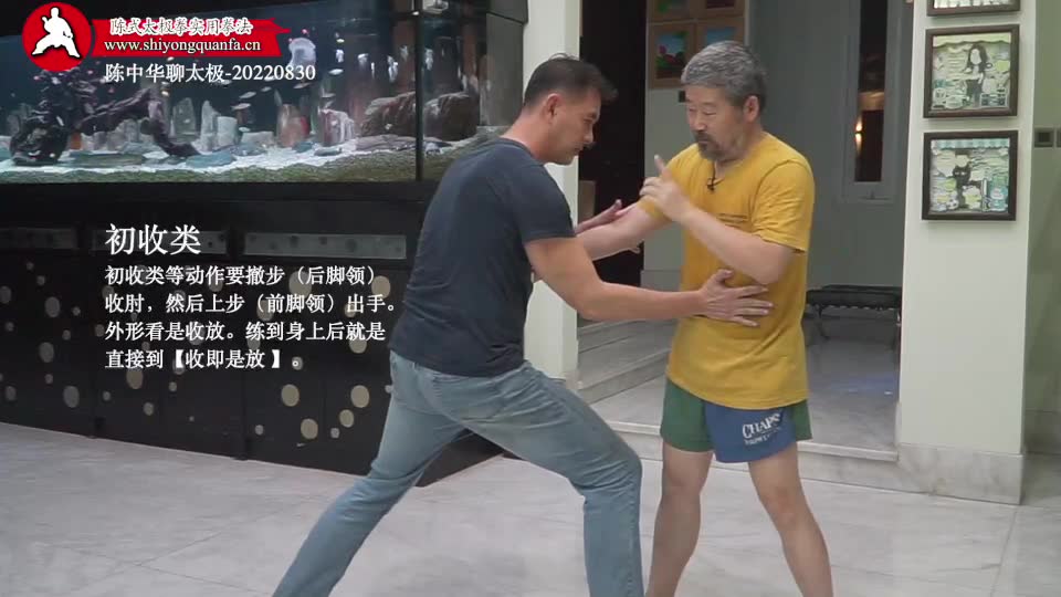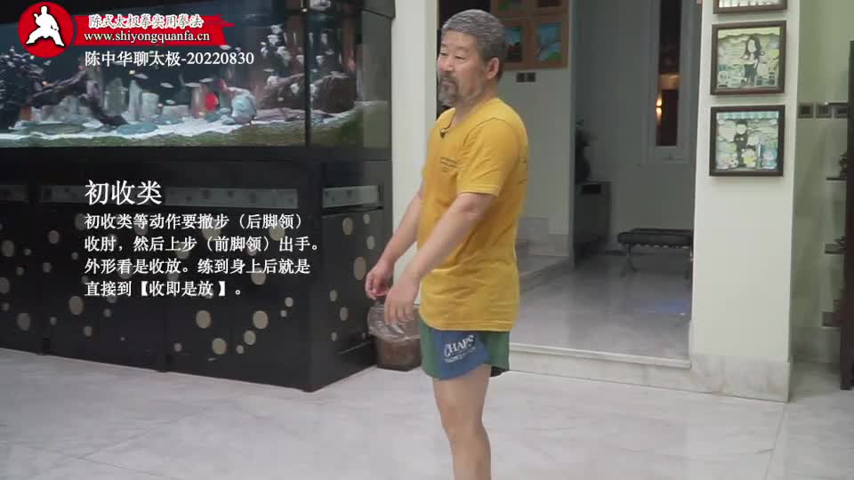 初收类-陈中华聊太极-20220830。初收类等动作要撤步(后脚领)收肘,然后上步(前脚领)出手。外形看是收放。练到身上后就是直接到【收即是放 】。