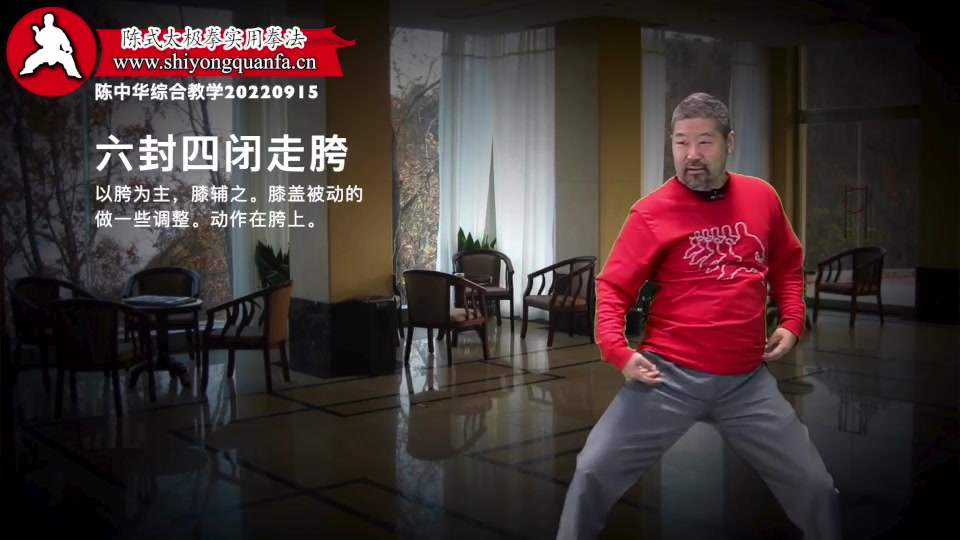 六封四闭走胯-陈中华综合教学20220915。以胯为主,膝辅之。膝盖被动的做一些调整。动作在胯上。