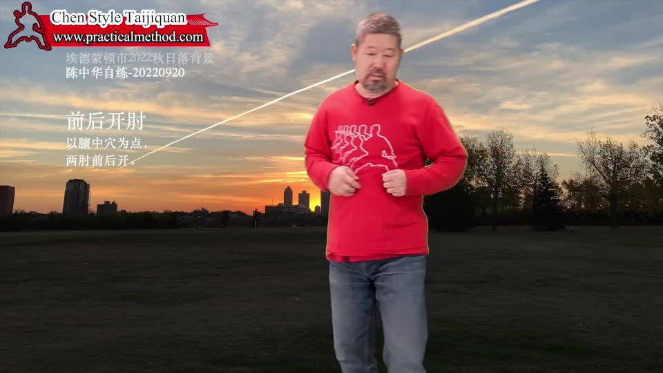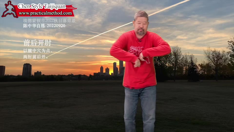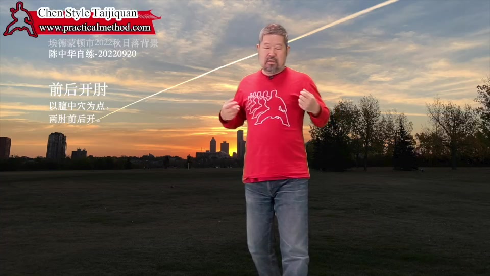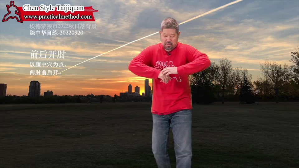 前后开肘-陈中华自练-20220920。以膻中穴为点,两肘前后开。