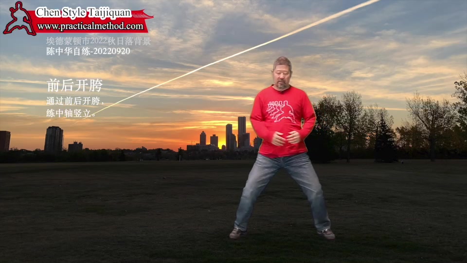 前后开胯-陈中华自练-20220920。通过前后开胯,练中轴竖立。