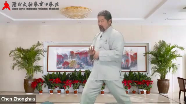 是两头不动动中间,肘走进来、形成直线、甚至过线。重是肘要到线的另一边去,肘是肩胯推进来的。肘过线过界、手就不是自己的了是肘推的,如果肘不过线,手的作不是来自肘。另外,胯里“拧瓶盖”,膝盖不动的。膝盖不动开胯实现的转腰才能提供力给前。可以看8分钟左右,老师带我们做作的一段练习。