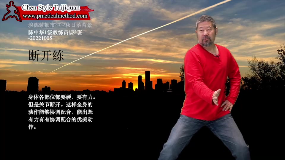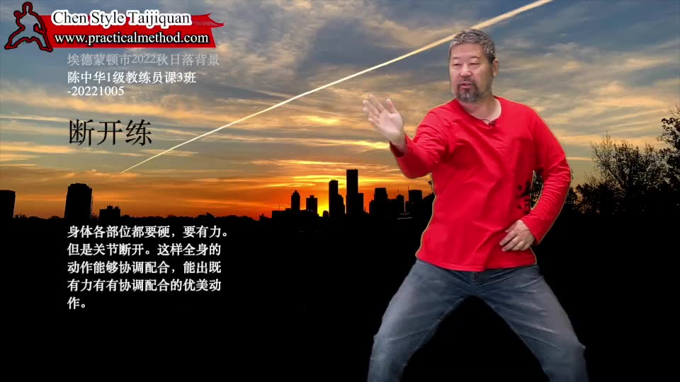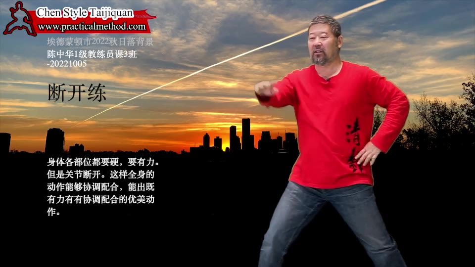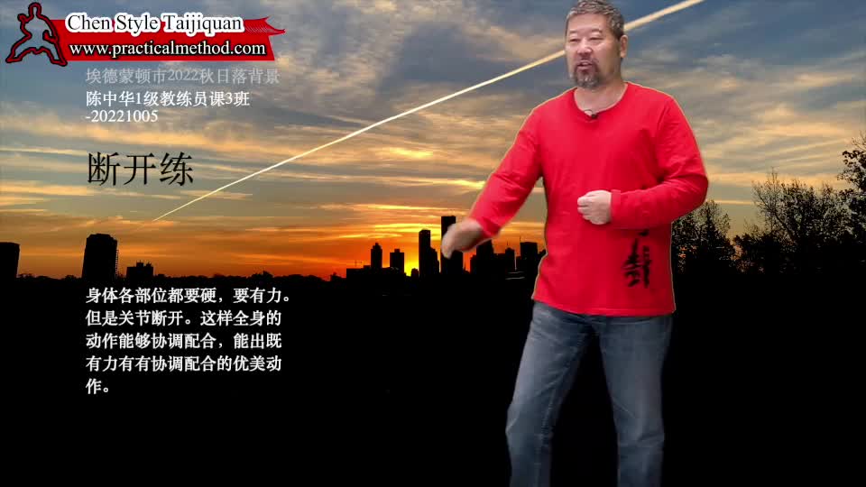 断开练-陈中华1级教练员课3班-20221005。身体各部位都要硬,要有力。但是关节断开。这样全身的动作能够协调配合,能出既有力有有协调配合的优美动作。